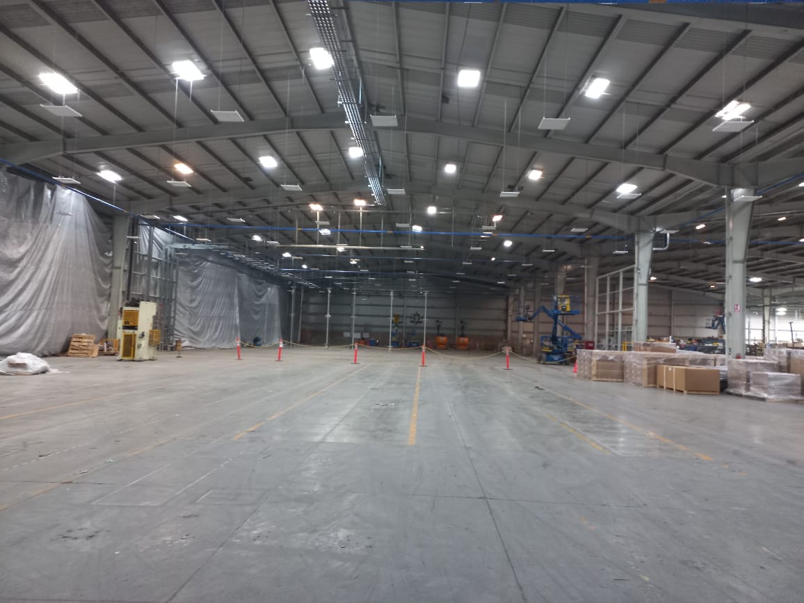 Instalación de sistemas de iluminación que mejoran la visibilidad, la seguridad y la eficiencia energética en zonas de producción, líneas de ensamble y áreas de almacenamiento.